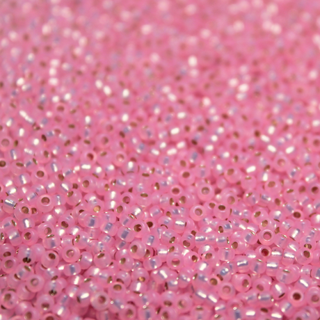 Gilt Lined Dyed Pink Alabaster ~ 11/0 JSB 583