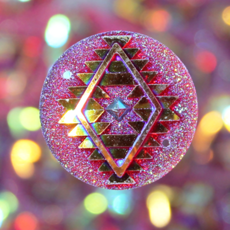 Fuchsia AB Round Geometric Tribal sew on Gems - S98