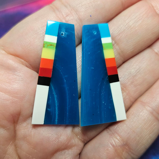 Resin Santo Domingo artisan made inlays, single hole at the top to either be used as earrings by adding a hook or ready to bead up.